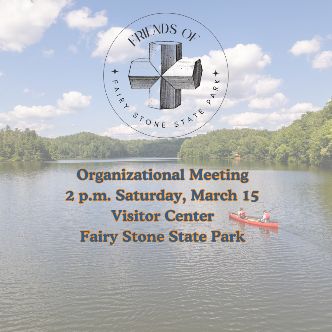 Join us at the park to discuss the future Friends of Fairy Stone group! We will be meeting at the Visitor Center at 2 p.m.